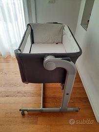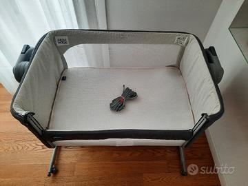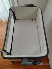 Gambe regolabi in altezza fino a 11 livelli anche singolarmente (culla inclinabile per prevenire il reflusso). Possibilità di sgancio per dondolio. Si sposta facilmente con le quattro rotelle dotate di blocco. Presente anche cinghia per assicurare la culla al letto. Incluso coprimaterasso estivo. Imbottitura sfoderabile e lavabile (un gancio della cerniera è rotto). Prezzo trattabile.