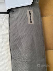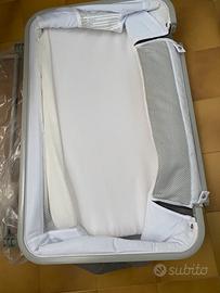 Tessuto triplo strato fresco e vellutato. Il tessuto a rete garantisce l'areazione, è incluso il materasso. Dispone di 4 ruote piroettanti con freno o in alternativa può essere utilizzata con piedini orientabili con gomma antiscivolo.