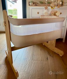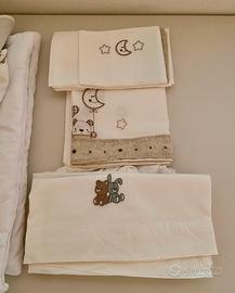 Vendo con piumone + completo Foppapedretti, aggiungo anche un completo Prenatal e uno Mayoral. Completa anche di giostrina in legno removibile e cinghie per legarla al letto.