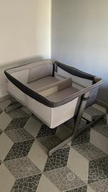 La culla è dotata di una barriera divisoria trasparente con inserto in rete che aiuta i gemelli a vedersi e sentirsi.