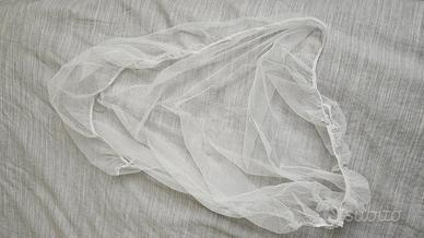 Cinghie per legarlo al letto ed evitare spostamenti (mai usate) e zanzariera (mai usata).