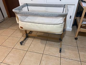 Culla e lettino da affiancare per neonato con materasso e funzione dondolo Regolazione in altezza a 5 livelli Opzione d’inclinazione Arioso co-sleeping portatile culla 2 ruote (Beige).