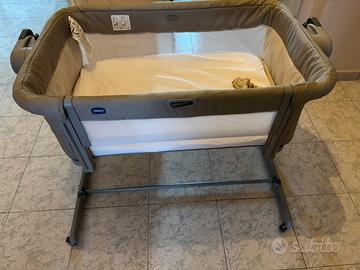 Vendo chicco next to me compresa di materassino pari a nuovo. Usata pochissimo. Si regola in altezza e inclinazione per favorire il riposo dei piccoli. I piedini si piegano per poterla avvicinare completamente al letto. Le ruote sono dotate di freno e il lato si abbassa per controllare il neonato durante la notte. Funzione dondolo manuale.