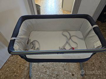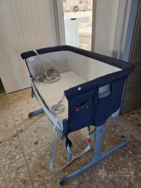 Vendo bellissima culla Chicco Next2Me nell'esclusiva variante Jeans. La culla è stata utilizzata con cura ed è in ottime condizioni. Pulita e igienizzata. Caratteristiche Principali: Design Denim: Tessuto resistente, facilmente lavabile. Sponda Abbattibile: Per dormire accanto al tuo bambino in totale sicurezza. Regolabile in Altezza: 6 livelli diversi per adattarsi a qualsiasi letto (anche quelli con contenitore grazie ai piedi snodabili). Inclinabile: Funzione utilissima per aiutare il neonato in caso di rigurgito o congestione nasale. Circolazione dell'aria: Ampia finestra in rete per una traspirazione ottimale. Cosa è incluso: Struttura culla completa. Materasso traspirante originale Chicco. Kit di cinghie per il fissaggio al letto matrimoniale . Sacca per il trasporto originale. Prezzo: 110€ Disponibile per ritiro a mano a Rovigo.