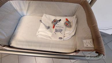 Vendo praticamente nuova Next2Me Chicco.Comprende scatola originale, istruzioni,sacca materassino,materassino,lacci per fissaggio a letto.Nel prezzo regaliamo lenzuoli compatibili.