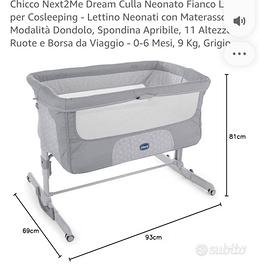 Vendo culla chicco next2me usata solo per un mese in ottimo stato con borsa per il trasporto.