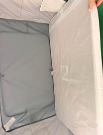 Cinghie per letto mai aperti, materassino, 6 livelli di altezza per adattarlo al letto, piedini piegabili, scatola originale.