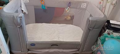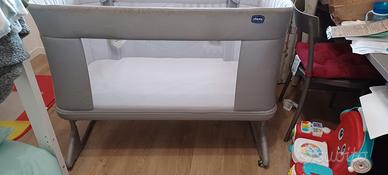 Next2me Forever Chicco da 0 a 4 anni con cinghie fissaggio letto e imballo originale, altezza regolabile sponde rimovibili.