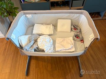 Next2me come nuova, regolabile in altezza, compresa di cinghie per assicurarla al letto.