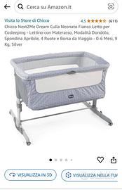 Vendo Chicco Next2Me in perfette condizioni. La culla è completa di materasso, sacca per il trasporto e di tutto ciò che era incluso al momento dell'acquisto. Usata con molta cura e perfettamente funzionale. Ritiro a Torino. Per qualsiasi informazione, non esitate a contattarmi.