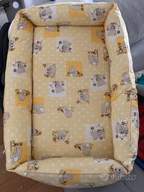 Vendo nido per neonati in puro cotone realizzato a mano. Completamente sfoderabile. Preparato per mio nipote e usato pochissimo. È perfetto!!