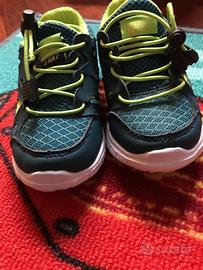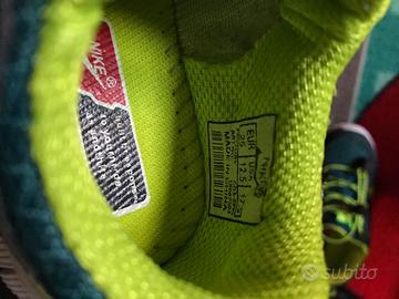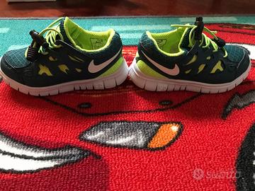 Nike bimbi nr 25, verde e verde acido, tessuto e pelle, senza lacci e linguetta, ottime condizioni utilizzate pochissimo