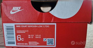 Modello: Nike Court Borough Low 2 Numero: 22 Condizioni: mai indossate. Scatola originale perfetta.