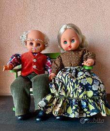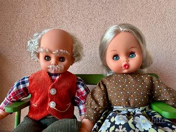 Nonno PEPI e nonna Bice di GA.DEA. Bambolotto fine anni'70 VINTAGE 1979 con panchina di legno .