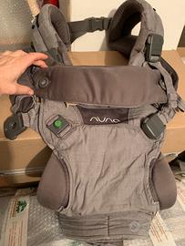 Colore grigio, dotato di due bavaglini in cotone Oeko-Tex. In ottime condizioni e perfettamente funzionante nelle chiusure e nelle bretelle. Fibbie magnetiche autoguidanti. Cintura regolabile. Tendina pieghevole per la testa del bambino in caso di sole o pioggia. Viene consegnato lavato e nel suo sacco di protezione.