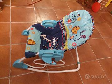 Altalena a dondolo 3 in 1, marca Fisher Price. Tonalitá azzurre. 1. Dondolo 2. Seggiolino 3. Altalena