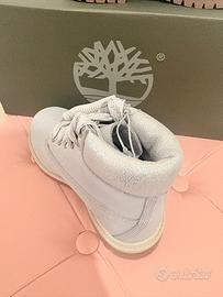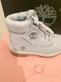 Disponibili iconici stivaletti Timberland 6-Inch Premium originali, modello Waterproof (impermeabili), perfetti per pioggia e neve. Le calzature sono nuove di zecca, mai indossate, complete di scatola originale e cartellino: una soluzione ideale anche per un regalo. Caratteristiche principali: Modello: Youth con finiture fashion (dettagli glitter argento su colletto e lacci). Colore: Pregiato nabuk Grigio Perla / Light Grey. Taglia: 31 EU (19 cm). Stato: 10/10 (Impeccabili). Comfort: Suola a carrarmato resistente e colletto imbottito. Prezzo di listino: 120€ Un'occasione imperdibile per chi cerca uno scarponcino robusto, caldo e alla moda.