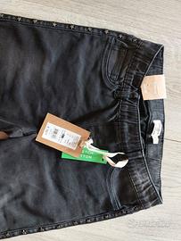 denim Jeans-Jeggings (ossia di cotone ma elasticizzati) di marca OVS da €17, come da Foto, da bambina ragazzina circa 146 cm. Colore grigio scuro-nero, con deliziose borchiette a forma di stella.