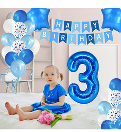 3 anni Decorazioni Compleanno Bambino Blu Kit Palloncini Compleanno 3 Anno, Palloncini Numero 3 Buon Compleanno Banner, Happy Birthday 3 Anno Palloncini Compleanno Riutilizzabile, Bambina Festa Funzionalità e dettagli [Pacchetto di decorazioni per 3 Anno feste di compleanno di grande valore]: Il Pacchetto Comprende:1 enorme striscione HAPPY BIRTHDAY + 1 enorme palloncino numero 3 (32 pollici) + 2 palloncini a forma di stella (18 pollici) + 6 palloncini coriandoli (12 pollici) + 24 palloncini in lattice (12 pollici) + 2 nastri (10 metri). [Materiale di alta qualità]: Il set di decorazioni per palloncini è composto da lattice e lamina di qualità, il numero di palloncini in alluminio, i palloncini di coriandoli e tutti i palloncini in lattice sono atossici e innocui, sigillo più forte e più duraturo, supportano l'elio o l'aria. Non devi preoccuparti di lacrimare o scoppiare dopo l'inflazione. Il banner è ecologico e può essere riutilizzato. [Scelta Ideale per i Bambini]: il nostro set di decorazioni per feste di compleanno è una buona scelta per chiunque desideri aggiungere più divertimento alla festa del piccolo e rendere il loro grande giorno ancora più speciale. [Facile da Montare]: le nostre forniture per feste di compleanno sono facili da configurare. appendi semplicemente il banner dove vuoi e gonfia i palloncini con elio o aria. Puoi decorare una festa meravigliosa senza perdere molto tempo. Sarà un divertente mestiere fai da te da finire con la tua famiglia. # Consegna a mano (solo su appuntamento) - Metro Linea Verde - Cologno Sud - PENNY Market di Merate # Spedizione con spese escluse +7 euro Pagamento anticipato intero importo +10 euro in contrassegno con spese di spedizione pagato in anticipo