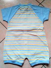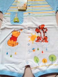 Vendo nuovissimo con cartellino: tutina/pigiamino della DISNEY. Colori di sfondo bianco azzurrino, soggetto Winnie the Pooh . Bottoncini sul davanti, manica corta. 100% cotone. Eta' 9 mesi-74 cm. Prezzo 13 euro. Spese di spedizione escluse.