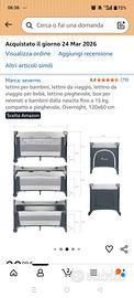 vendo nuovo lettino da campeggio,ideale per co-sleeping,ha una spondina che si abbassa e il materasso è regolabile su più altezze come descritto in foto.Il lettino è nuovo,ho richiesto un reso su Amazon per una scucitura e me l hanno lasciato così ne ho acquistato un altro per il resto è perfetto.Comodo da usare come lettino al posto del classico lettino a sbarre.Economico leggero e confortevole.Possibilita ritiro a mano Bergamo o Martinengo oppure spedizione a carico dell acquirente