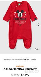 Tuta neonato lunga in puro cotone dalla mano calda e dal peso medio. Scollo rotondo, manica lunga, pratica apertura nascosta con bottoni a pressione lungo il lato destro. Stampa ©Disney sul davanti, fondo gamba con piedini. Perfetta anche come idea regalo per Natale. Colore: rosso Serie: Disney Tema: Mickey Mouse Topolino Marca: Benetton Età: 9-12 mesi NUOVO - ancora con cartellino €5