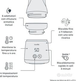 Nuvita 1163 Warm’n’Mix Scaldabiberon Portatile a batteria con Funzione di Riscaldamento e Mescolamento – Riscaldamento Rapido in 3 Minuti, 4 Impostazioni di Temperatura, Compatibilità Universale