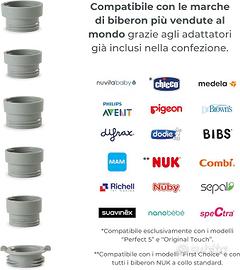 Compatibilità Universale: Include 6 adattatori compatibili con i principali marchi di biberon come Chicco, Avent e NUK, senza necessità di accessori aggiuntivi.