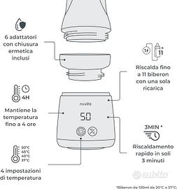 Design Compatto, Portatile e Ricaricabile: Leggero e facile da trasportare, con una batteria resistente fino a 11 cicli di riscaldamento per carica. Si ricarica in 4 ore, perfetto per genitori sempre in movimento.