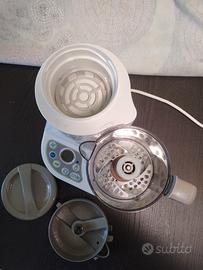 Vendo Nuvita Cuocipappa e scaldabiberon Pappasana Vapor Combo 2, come nuovo. Cuocipappa a vapore 6 in 1 6 funzioni in 1 per aiutarti a preparare tutti i pasti della giornata del tuo bambino, a partire dai primi mesi di vita fino a dopo lo svezzamento. Trita, Frulla, Omogeneizza, Cuoce a vapore, Scongela e scalda biberon e vasetti. Sterilizza in maniera naturale con la forza del vapore. Per una pappa cremosa in pochi minuti e senza sforzo. Con lo speciale tasto “Cuoci & Frulla” preparare la pappa per il tuo bimbo non è mai stato così semplice e veloce: ti basterà versare tutti gli ingredienti e in pochi minuti otterrai una pappa cucinata a puntino e super cremosa. Inoltre, la speciale forma delle lame in acciaio è studiata per omogeneizzare gli ingredienti senza formare bolle d’aria, diminuendo il rischio di coliche gassose per il tuo bebè. Funzione scaldabiberon: Il cuocipappa PappaSana riscalda e scongela con acqua a “bagno-maria” e può essere utilizzato anche per scaldare il latte materno, senza alterarne il sapore e i principi nutritivi.