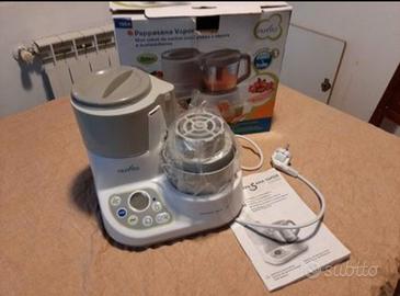 Pappasana vapor combo Nuvita, robot da cucina cuoci pappa a vapore e scaldabiberon. Sono DUE ELETTRODOMESTICI IN UNO. Cuoce a vapore, trita, frulla, omogenizza, scongela e scalda biberon e vasetti. Adatto per frutta, verdura, carne e pesce. Compresa scatola e libretto istruzioni. Come nuovo