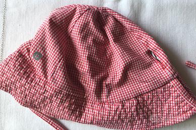 T-Shirt bambina bianca con disegni e cappellino reversibile coordinato. Il cappellino all’interno è leggermente scucito. Taglia 12 mesi.