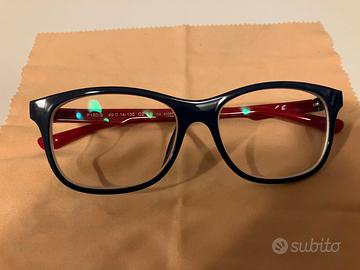 Vendo occhiali da vista bambino Usati Lenti da sostituire in base all’esito della visita oculistica Marca Clark Materiale plastica resistente 1 clip calamitata lenti specchiate da sole 1 clip calamitata lenti scure da sole Custodia Pannetto per pulizia lenti