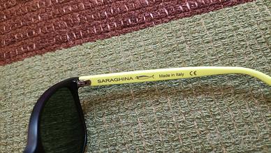Occhiali Saraghina bambino/ bambina. Lente specchiata verde con montatura nero satinata. Adatti indicativamente dai 5/6 anni, ai 10/11 anni. Con custodia originale . Ottime condizioni.