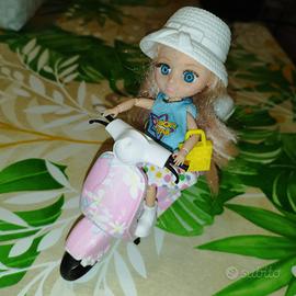 ODS Trendy Teens Mini Fashion Doll in scooter , bambolina snodabile con scooter, casco, cappello, zainetto e spazzola per capelli. Usato in ottime condizioni, altezza bambolina 16 cm