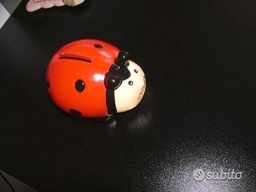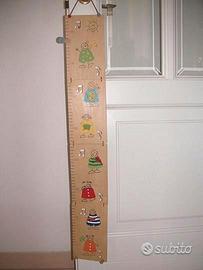 vendo, anche separatamente: 1)un attaccapanni per bambini in legno, misure: lunghezza cm 20 - altezza cm 13,50 euro 4 2)un metro per misurare i bambini, in legno, pieghevole in 4 parti, completo di una molletta in legno per segnare l' altezza e disegni applicati in rilievo euro 9 3)un salvadanaio in ceramica a forma di coccinella lungo cm 10 euro 4 4)una cornice portafoto, in ceramica, cm10 x cm7 euro 4 Spedizione disponibile