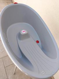 Vaschetta: design ergonomico, leggere e facile da spostare. Dotata di un punto d' appoggio inguinale. Termometro incorporato e indicatore del livello d' acqua consigliato. Misure di ingombro massimo: b 42 x h 24 x p 63 cm.