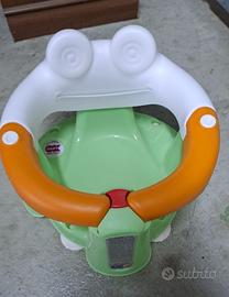 Crab, la comoda "poltroncina" da bagno con un plus in più. Il "granchietto" apre e chiude le sue chele per facilitare la seduta e l’uscita del bambino. Un sistema di sicurezza fa si che il bambino non possa sganciarlo da solo. Indicazione livello massimo di acqua e ventose antiscivolo.