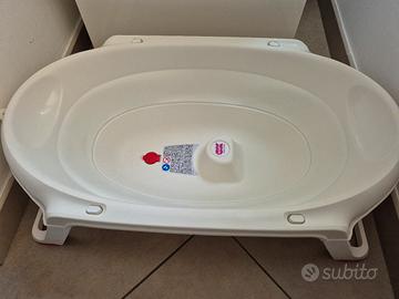 Vaschetta pieghevole per il bagnetto del neonato, da 0 a 12 mesi. Grazie alle sue dimensioni contenute, può essere usata nel piatto doccia, appoggiata nella vasca per adulti o su qualsiasi piano stabile. Vaschetta con punto di ritenzione inguinale asimmetrico: permette l’utilizzo nelle due posizioni di seduta per il mantenimento di una postura corretta del bambino durante la fase di crescita.