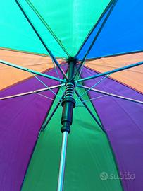 ombrello per bambini multicolore, apertura automatica con pulsante con due disegni coloratii e manico a forma di cigno