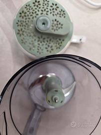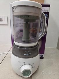 Vendo omogeinizzatore Philips Avent, utilizzato pochi mesi. EasyPappa Plus 4 in 1 Cuocipappa Multifunzione, Cuoci a Vapore, Frulla, Scongela e Riscalda in un Recipiente, 1 litro, colore bianco e verde. Esclusiva tecnologia vapore, che circola dal basso verso l'alto e cuoci tutto senza bollire. Cuoci capovolgi frulla: tutto ciò che ti serve per preparare pappe nutrienti in un solo recipiente. Pappe per ogni fase dello svezzamento: frutta e verdura omogeneizzata, carne, pesce anche in pezzi. Design 4-in-1: cucinare, frullare, conservare e riscaldare pappe nutrienti nello stesso recipiente