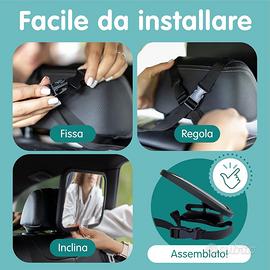 •Grande specchio panoramico per una visuale chiara e completa del bambino posizionato nel seggiolino posteriore.