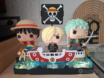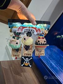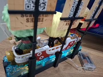 espositore one piece per sorprese kinder con luci led incluse , occorrono 2 stilo non incluse , l espositore va tutto ad incastro e permette di tenere tutto fermo SORPRESE KINDER BARCA ,PERSONAGGI E CARD NON INCLUSE . disegnato e stampato personalmente su ordinazione . per info mandate un messaggio .annuncio sempre valido .