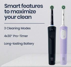 ✅NUOVO✅Oral‑B Spazzolino Elettrico Vitality Pro Duo Gift Edition – Set Duo Spazzolini Elettrici Ricaricabili Black & Pink – Perfetto per Coppia. Questo duo pack offre una pulizia dentale molto più efficace di uno spazzolino manuale, grazie alla tecnologia rotante-oscillante Oral-B, che rimuove efficacemente placca e residui alimentari dalla superficie dei denti e lungo la linea gengivale. 🦷 Caratteristiche principali: • 🌟 Tecnologia di pulizia 2D (oscilla e ruota) per una pulizia profonda e delicata.  • 🕑 Timer integrato da 2 minuti con segnali a intervalli da 30 s per aiutarti a rispettare il tempo consigliato dai dentisti.  • 🔄 3 modalità di spazzolamento (Pulizia Quotidiana, Sensibile, Super Delicata) adattabili alle tue esigenze.  • 🔋 Batteria ricaricabile con autonomia prolungata e caricabatterie incluso.  • 🎨 Colori eleganti Black & Pink – perfetto come set per coppie o famiglia. 📦 Contenuto della confezione: • 2 x Manici spazzolino elettrico (Black + Pink) • 2 x Testine di ricambio compatibili Oral-B • 1 x Base di ricarica 📌 Ideale come regalo o per uso quotidiano, migliora l’igiene orale rispetto agli spazzolini manuali e aiuta a mantenere denti e gengive sani.