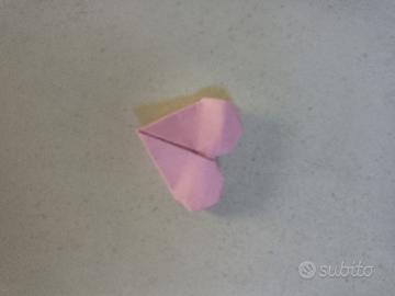 Origami segnalibro a forma di cuore di due differenti dimensioni realizzati a mano, in confezioni da quattro pezzi. Disponibili i seguenti colori: verde scuro, verde chiaro, verde acqua, blu, azzurro, rosso fuoco, arancione, fucsia, rosa, viola, giallo, bianco. Spese di spedizione a carico dell'acquirente.