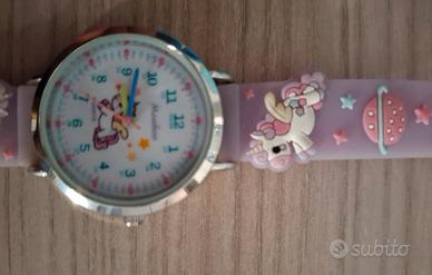 orologio bimba con lancette e numeri con unicorni