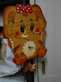 Vendo nuovissimo orologio d'arredo in legno con pendolo, lavorazione artigianale per arredo bambini. Come nuovo, perfettamente funzionante e senza alcun graffio.