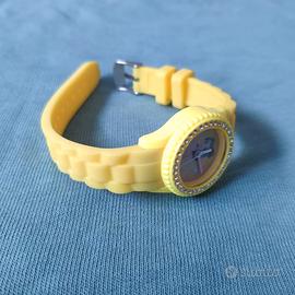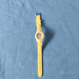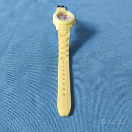Vendo nuovissimo orologio da bimba Disney dedicato a Belle. Il design vivace è realizzato in morbidissimo silicone e caratterizzato dal colore preferito di Belle, con un'immagine del personaggio sul quadrante e lucenti cristalli come decorazione. Design a tre lancette. Indici numerati. Movimento giapponese. Singola corona di carica laterale. Cinturino regolabile con passante singolo. Il diametro del quadrante misura 23 mm. Il diametro della cassa misura 29 mm. Prodotto realizzato in silicone, plastica, lega e cristalli.