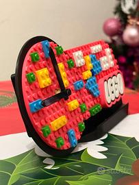 Originale orologio da tavolo in stile LEGO con portapenne incorporato. Realizzato con stampa 3D