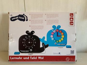 Questo orologio di apprendimento non ha solo un dolce aspetto, ma permette ai piccoli di comprendere più facilmente il tempo. La lancetta sul lato anteriore brilla con colori vivaci. Il clou: sul retro dell’orologio si trova una lavagna sulla quale si tracciano le lancette. Gessetto e spugna possono essere utili.